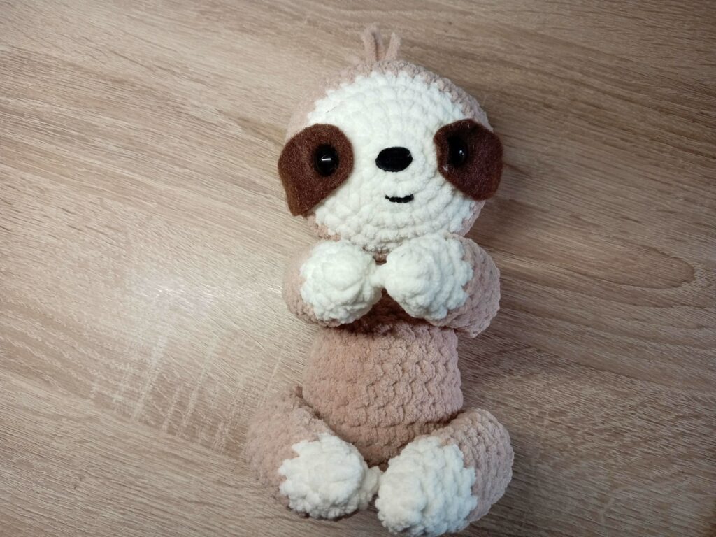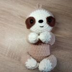 Une peluche paresseux crochetée à la main d’environ 18 cm de haut
